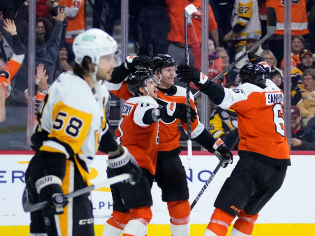 Sean Couturier scored 3:55 into overtime to lead the Philadelphia Flyers to a 2-1 victory over the Pittsburgh Penguins on Monday night.