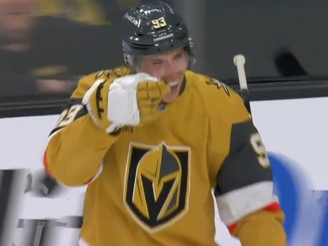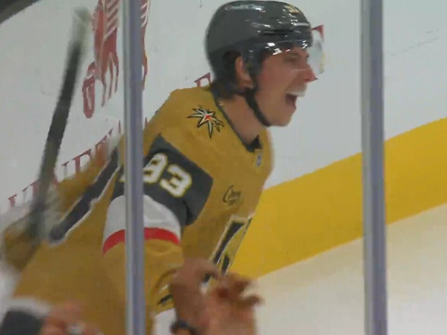 Watch as Vegas Golden Knights’ Mitch Marner collects the puck on the fast break and pulls off a filthy deke in tight to score his second goal of the game against the Calgary Flames.