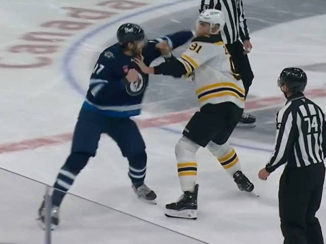 Watch Winnipeg Jets captain Adam Lowry and Boston Bruins defenceman Nikita Zadorov drop the gloves for a heavyweight fight during the third period.