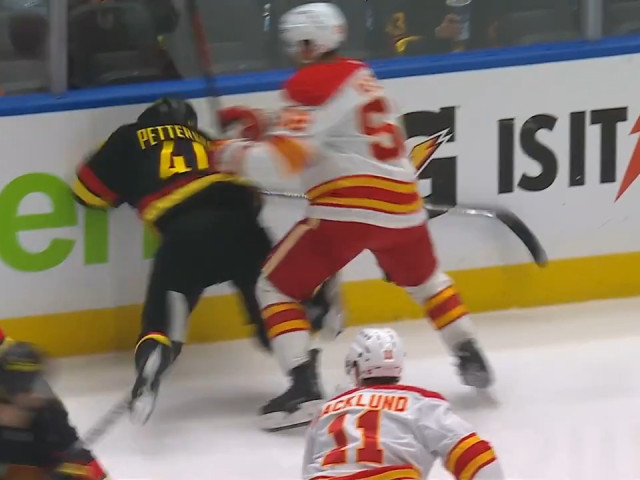 Watch as MacKenzie Weegar gets a boarding minor for his hit on Elias Pettersson, followed by Elias Nils Pettersson’s boarding call on Connor Zary.