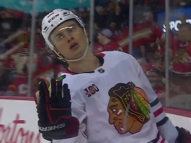 Watch as Chicago Blackhawks forward Connor Bedard shows off incredible hands with a takeaway and backhand-forehand move to pot a goal against the Calgary Flames.