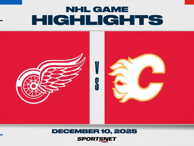Alex DeBrincat had a two-goal, three-point night as the Detroit Red Wings fought off a third-period comeback to defeat the Calgary Flames 4-3.