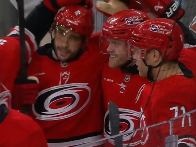 Watch as Carolina Hurricanes’ Nikolaj Ehlers finally breaks a scoreless deadlock, jamming in the OT winner off a great pass from Taylor Hall to lift his team past the Calgary Flames.